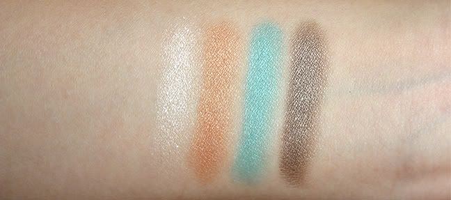 After my underwhelming experience with two of these eye shadow quads by H&M (here) I wanted to experiment with a more colourful palette before I write them off completely. Honestly speaking I think the quality of the shadows in Give Me That Special Glow were even poorer than the ones in the two neutral palettes I reviewed before - such a shame really because I love the colour combination (a shimmery off white, a warm golden orange, a bright aqua blue, a deep gunmetal brown). I absolutely adore the darkest shade, and it reminded me of Urban Decay's Darkhorse shadow from the Naked palette (review here) but when I actually swatched the two side by side, this was much lighter and almost looked like a taupe in comparison. It is so stunning, and I am currently on a mission to find a better quality dupe for it.