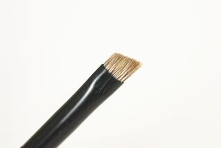 The eyebrow brush is roughly 10cm long, with a shallow slant, and made from water badger hair. I compared it with the MAC 266 (on the right with the silver ferrule) to show the chunkiness. I don't use brow brushes personally, but I tried it and it is extremely efficient. I wouldn't recommend using this as an eyeliner brush as it feels a little too stiff and coarse for the eye area.